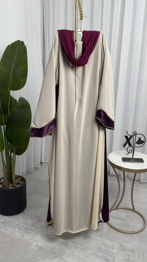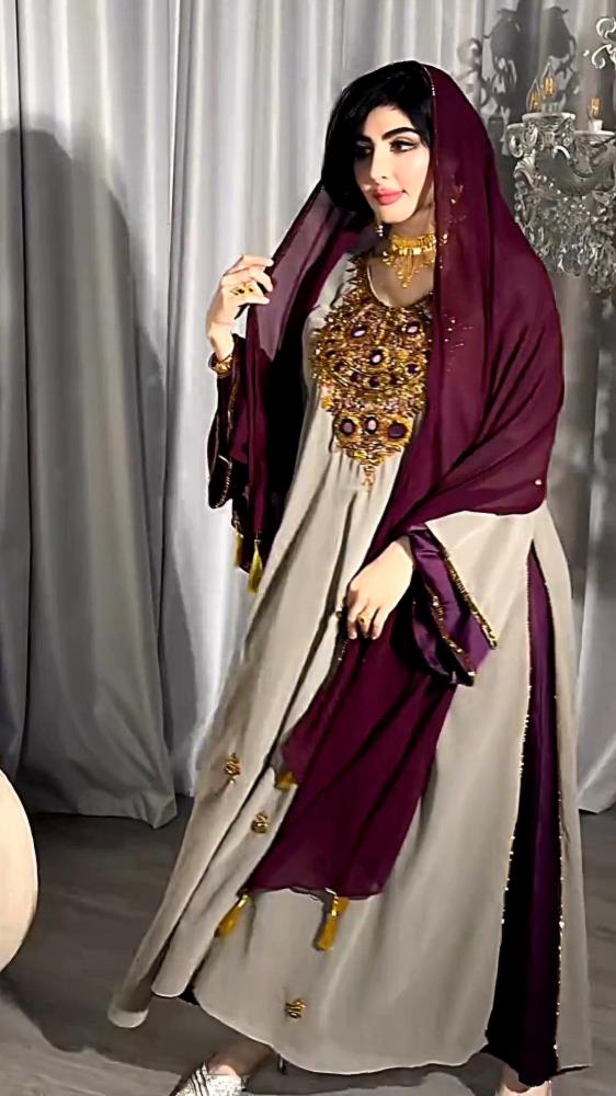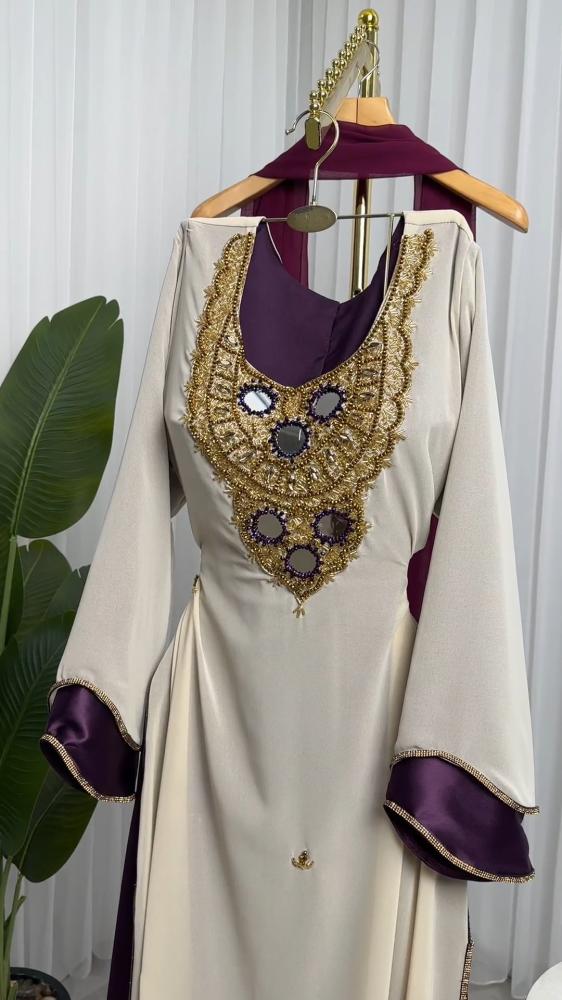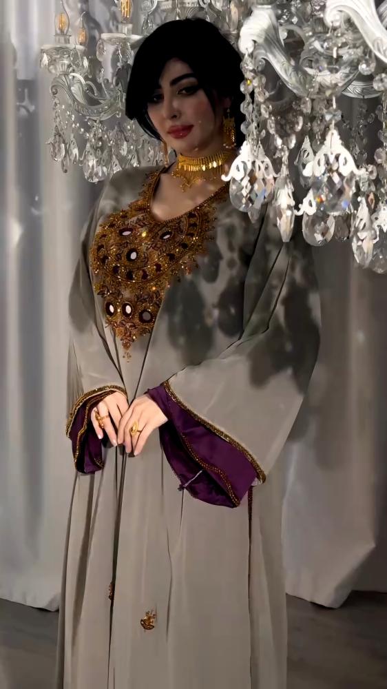 - أكمام طويلة واسعة بتفاصيل جذابة تعزز من الفخامة.