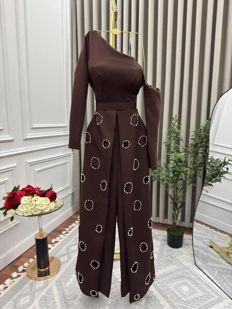 التصميم: جمبسوت أنيق بقصة طويلة وانسيابية، يتميز بتصميم عصري وراقٍ يناسب مختلف المناسبات.