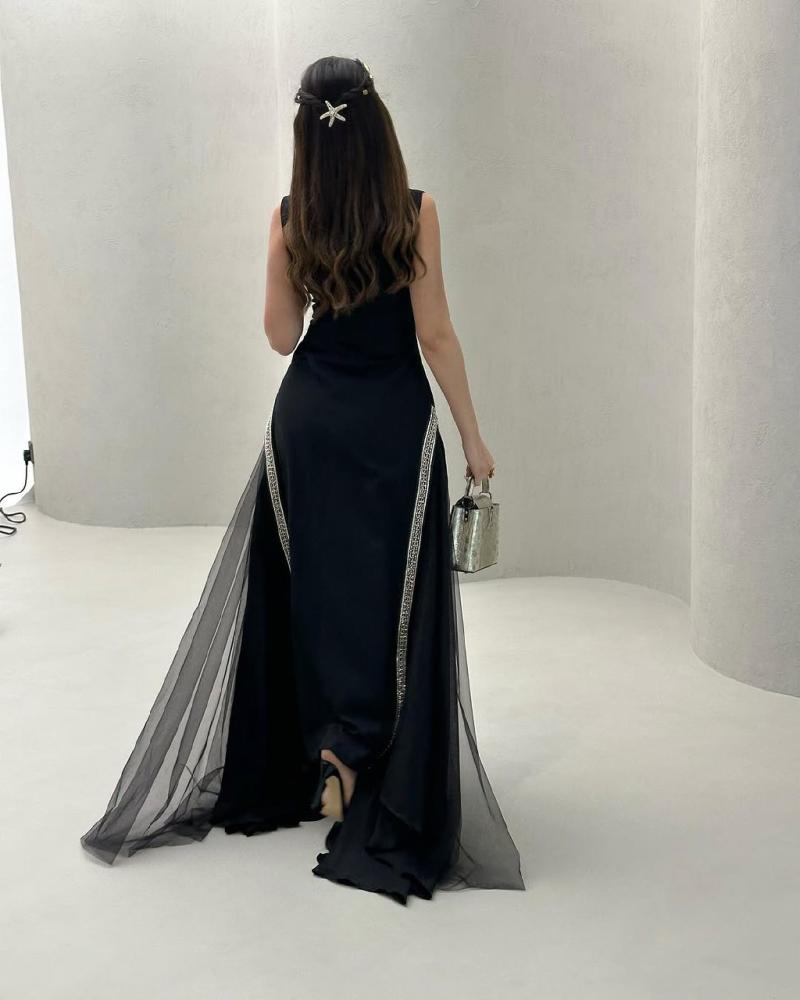 - **التصميم:** فستان طويل أنيق بدون أكمام، يتميز بقصته الفاخرة التي تمنح إطلالة راقية وأنثوية مثالية للمناسبات والسهرات.