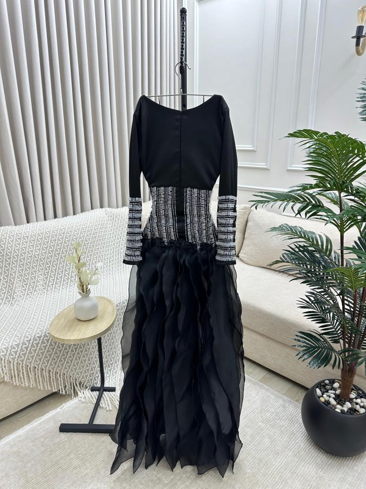 - **التصميم:** يتميز الفستان بتصميم أنيق ومميز يجمع بين الفخامة واللمسة العصرية.