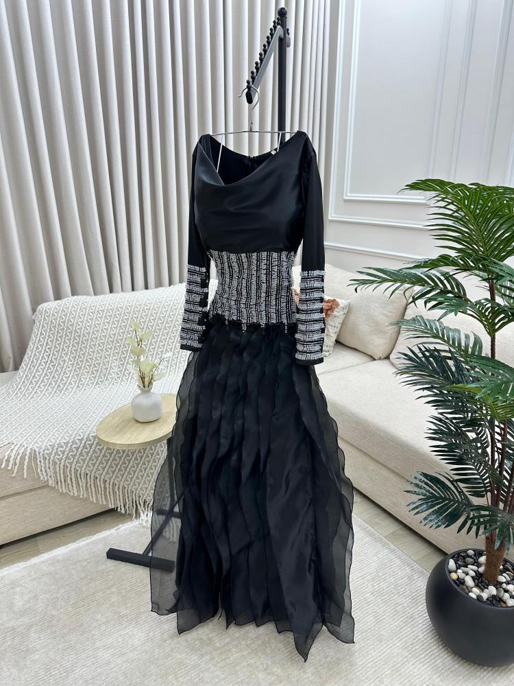 - **الألوان:** متوفر باللون الأسود الفخم مع لمسات براقة من التطريز اليدوي.