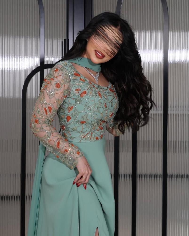 اللون: درجة راقية من الأخضر المينتي تمنح إطلالة هادئة وأنيقة.
