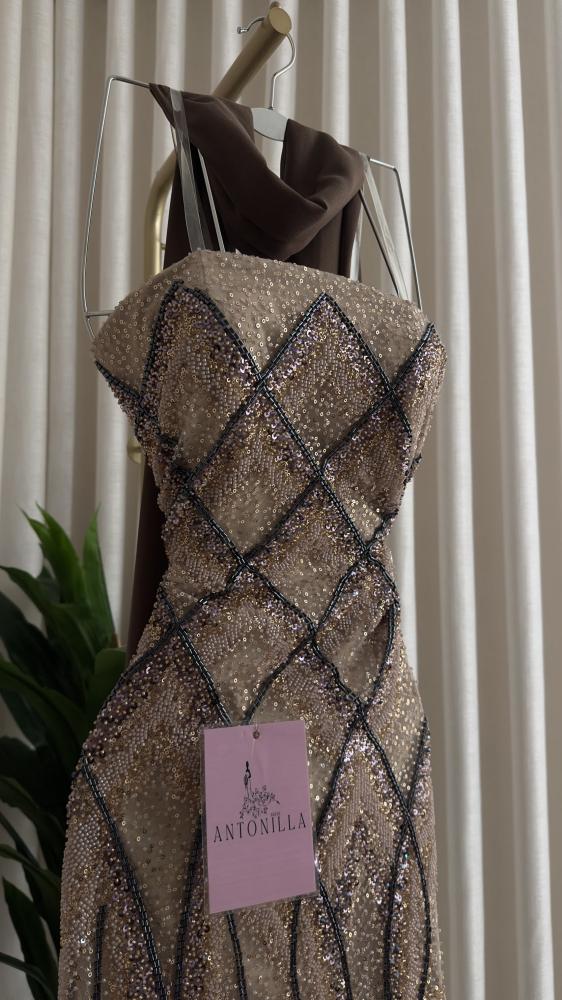 فستان سهرة فخم بتصميم راقٍ يمنحك إطلالة مبهرة في المناسبات الخاصة.