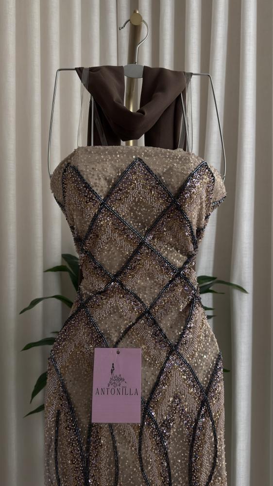 مصنوع من كلفة تل مطرزة بالكامل بتفاصيل براقة أنيقة تلفت الأنظار.