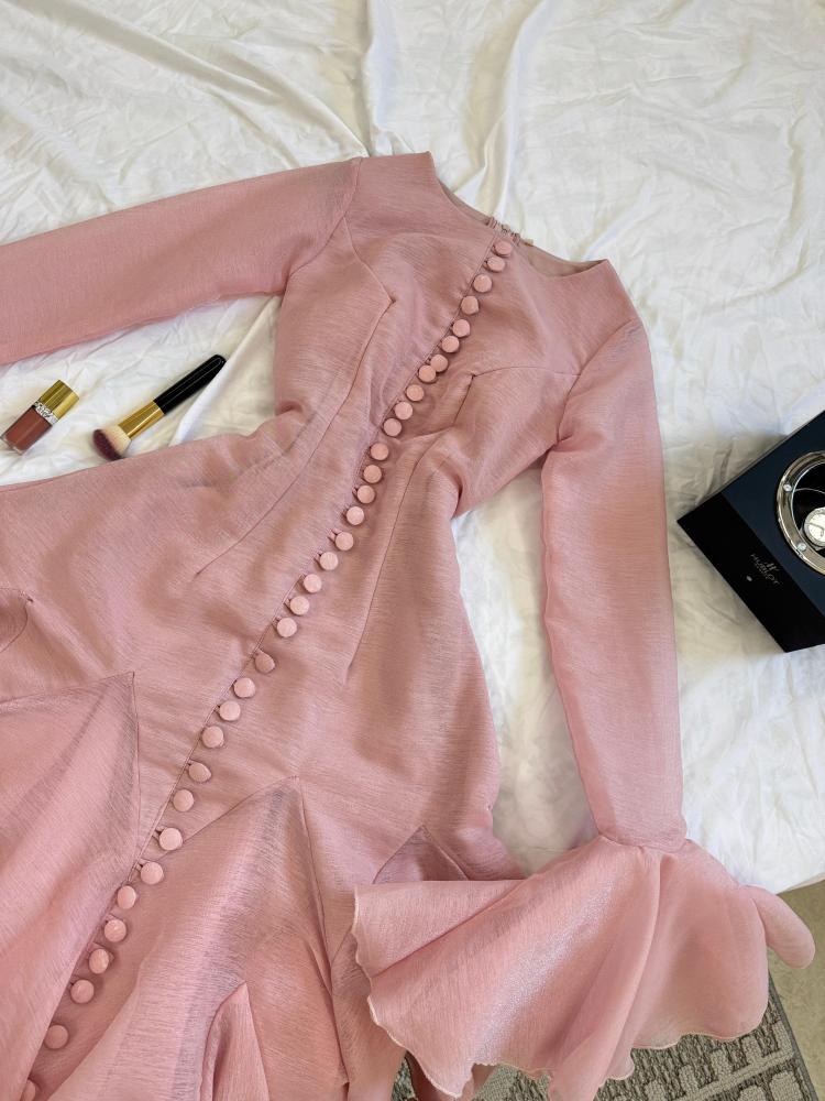 - القماش يتميز بجودة عالية تمنح الفستان شكلاً أنيقًا ومتناسقًا.