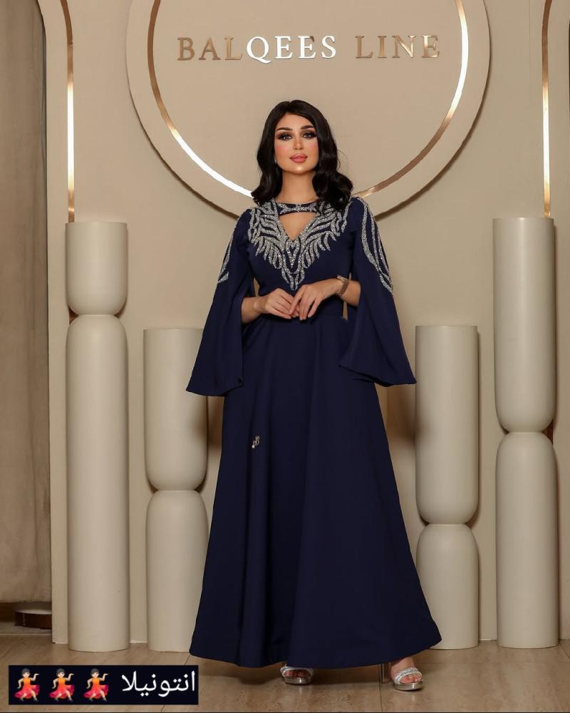 - **التصميم:** فستان واسع بقصة أنيقة مع أكمام واسعة لإطلالة راقية