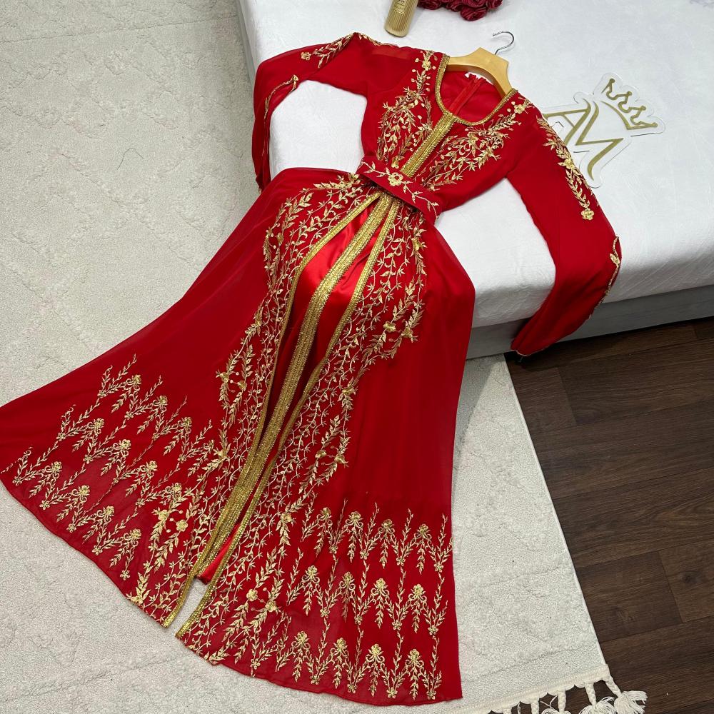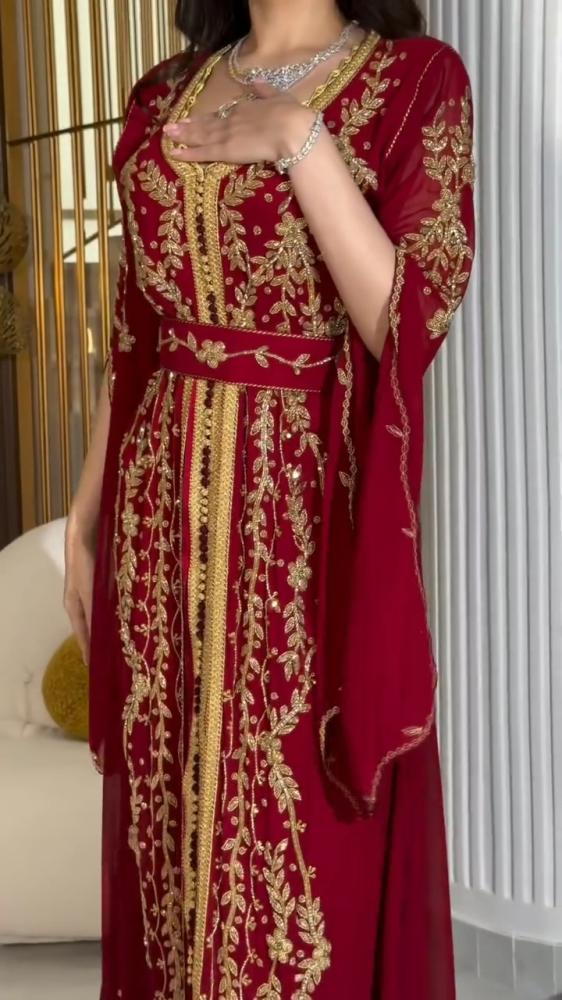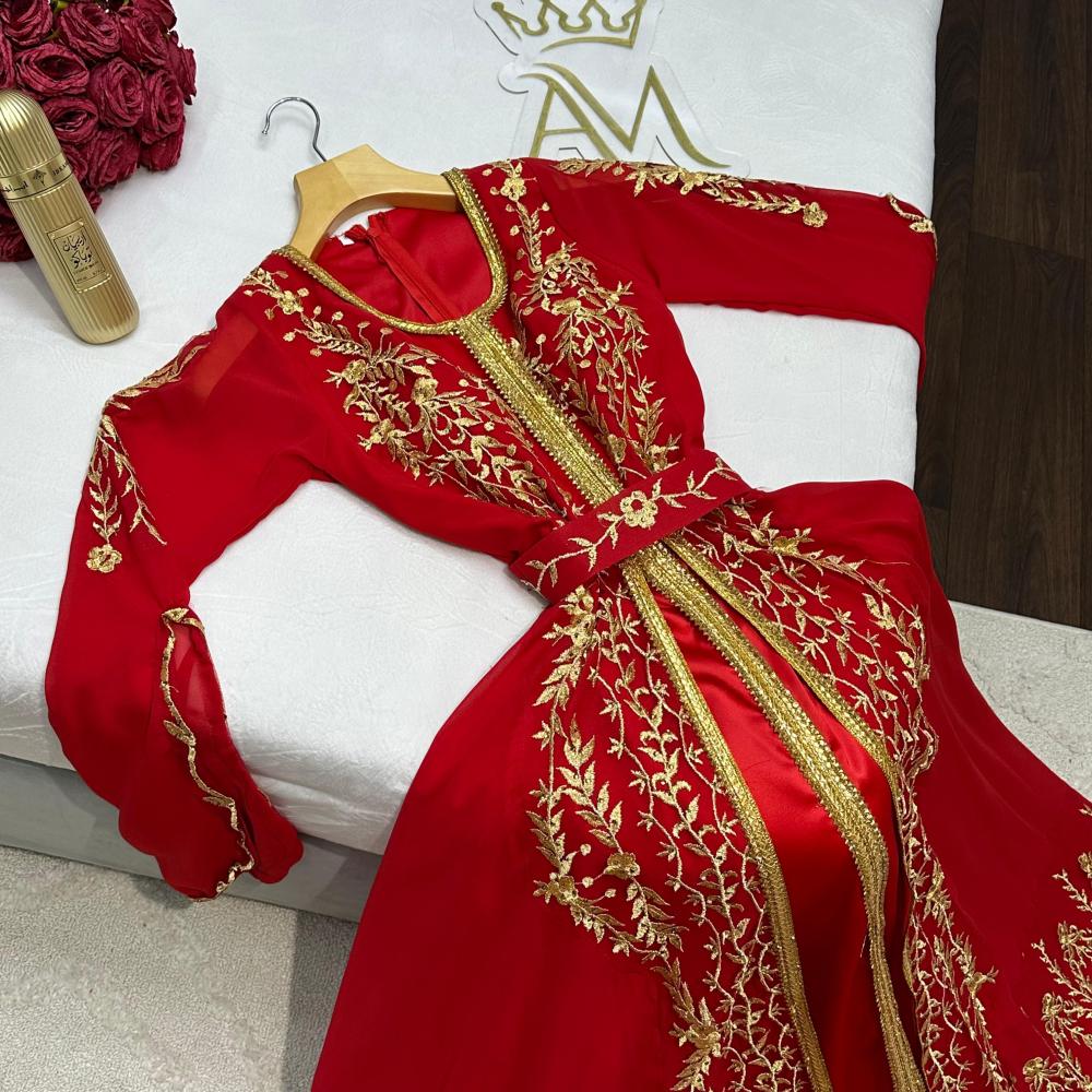 الألوان: اللون الأحمر الملكي مع تطريز ذهبي فاخر